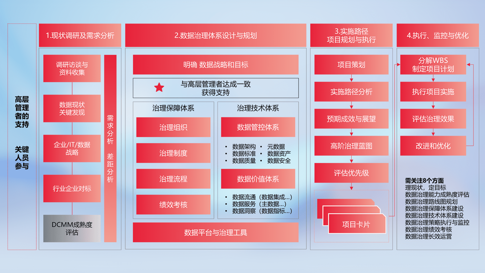 制定并执行统一的数据标准,,规范数据定义和格式,,,消除冗余和不一致性,,实现跨部门和跨系统的数据一致性,,为企业提供标准化的数据基础。。